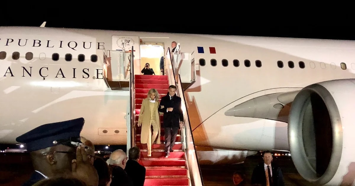 Macron aterrizó en la Base Conjunta Andrews, la instalación de la fuerza aérea utilizada por Biden a las afueras de Washington.