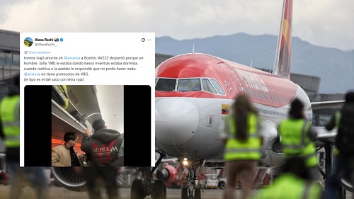 Según la denunciante, la viajera ―que fue identificada en la publicación como Ivonne―, “viajó anoche en @avianca a Bostón, AV222 despertó porque un hombre (silla 19B) le estaba dando besos mientras estaba dormida. Cuando notifica a la azafata le respondió que no podía hacer nada. @avianca no tiene protocolos de VBG.(el tipo es el del saco con letra roja)”, escribió la usuaria.